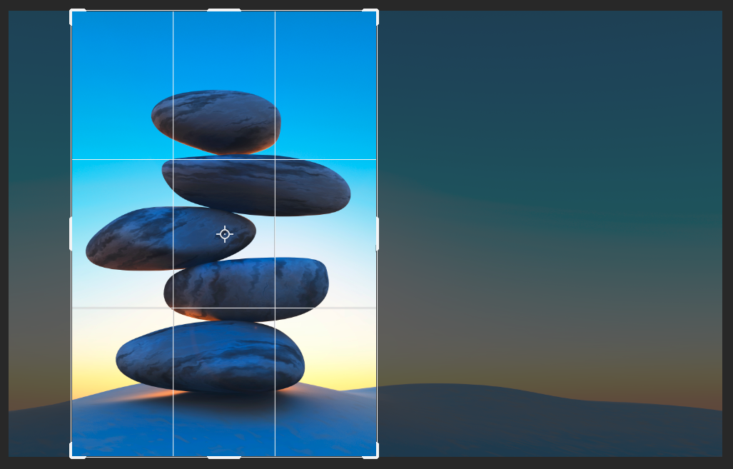 9. J’étire une des poignées située sur l’un des coins de la photo.