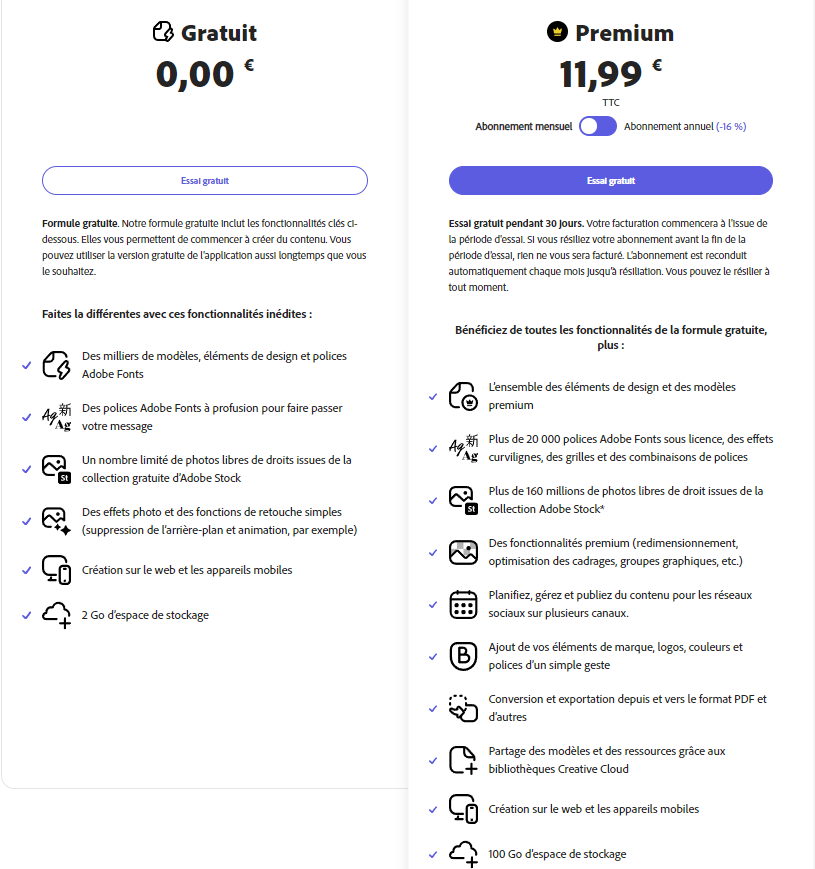 Il y a une formule gratuite et une autre en premium (11,99 ttc/mois ou 119,99€/an)